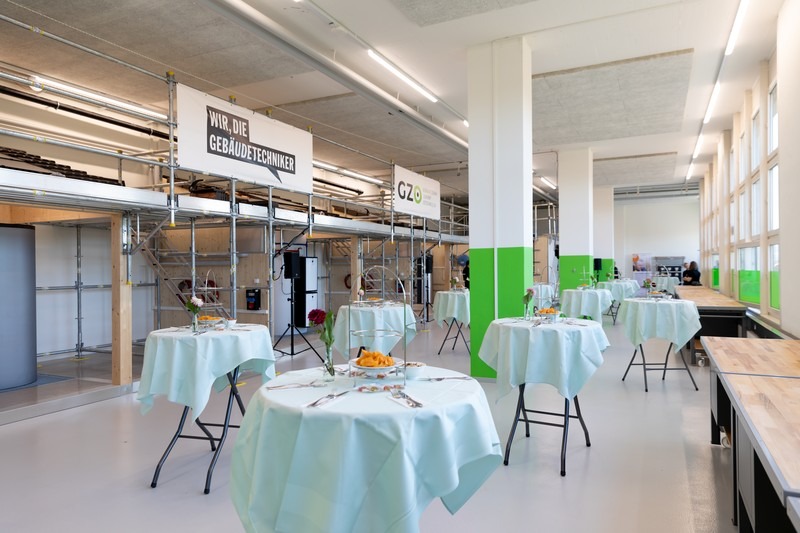 Bei der Erweiterung standen die erneuerbaren Energien im Vordergrund. So entstand die Vertiefung der Kompetenzen rund um die Solarenergie. In dieser Werkstatt werden die Auszubildenden aller unserer Fachrichtungen in der Montage und Inbetriebnahme von Solaranlagen geschult. Die dafür benötigten grösseren Modelle sind fix montiert. Dank einer Raumhöhe von über vier Metern kann unter «realistischen» Bedingungen an den Modellen gearbeitet werden. Schweizweit ist dies eine der wenigen Werkstätten, die unter fast realen Bedingungen in Betrieb genommen werden kann (Indoor). Die neue Werkstatt steht sämtlichen Berufen zur Verfügung und ist «hybrid». Das heisst, dass die Werkstatt optimal genutzt und auf die jeweiligen Bedürfnisse sowie Kurse abgestimmt werden kann. So werden auch üK-Kurse durchgeführt, die nicht im direkten Zusammenhang mit dem Thema Solar stehen.