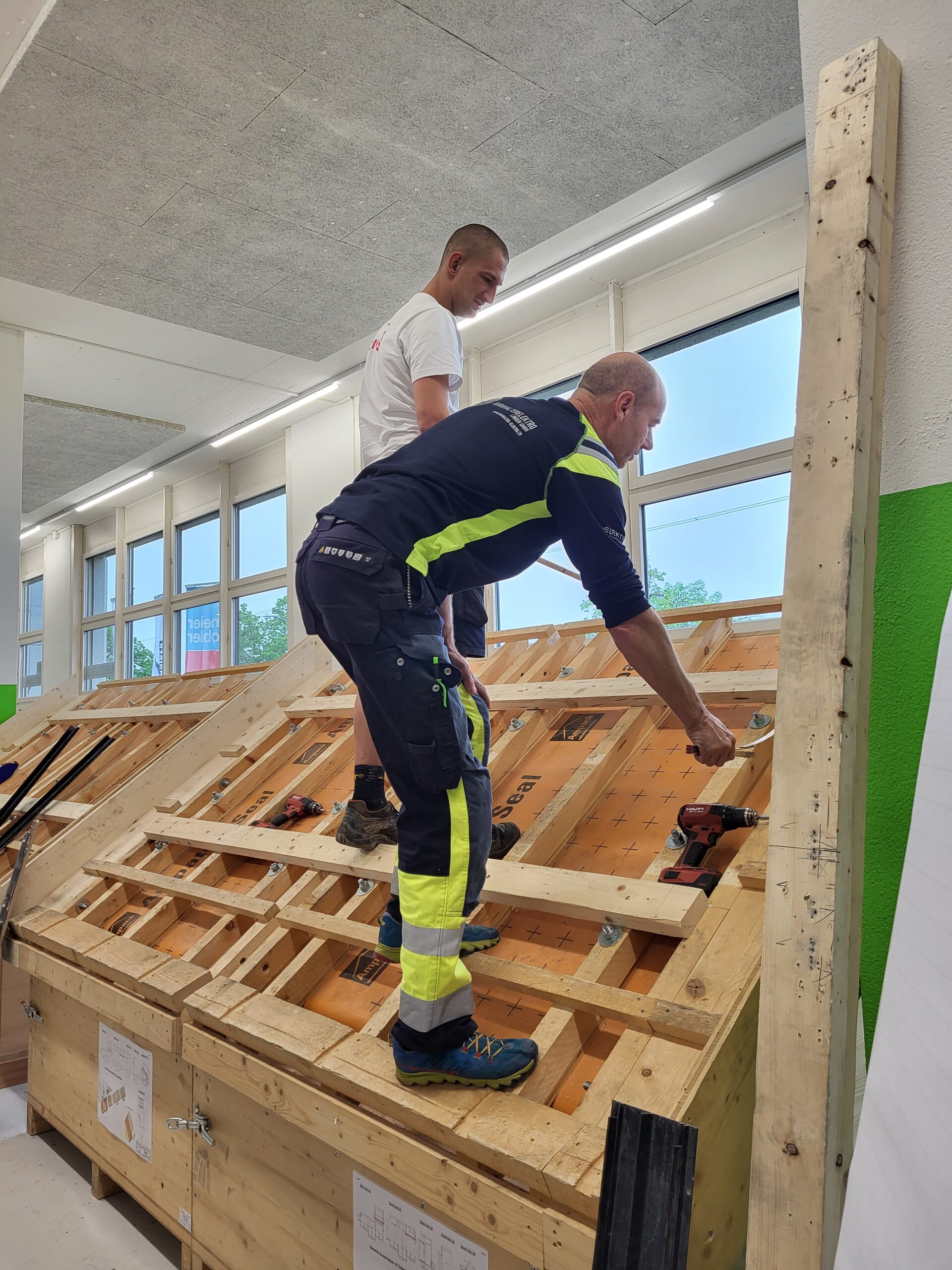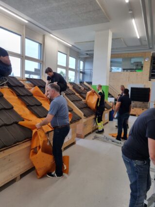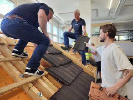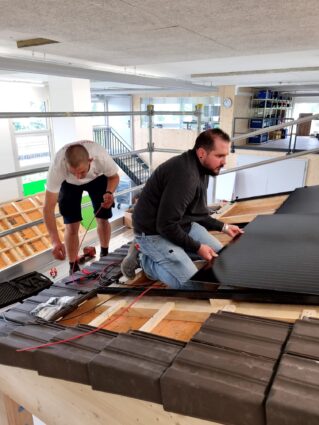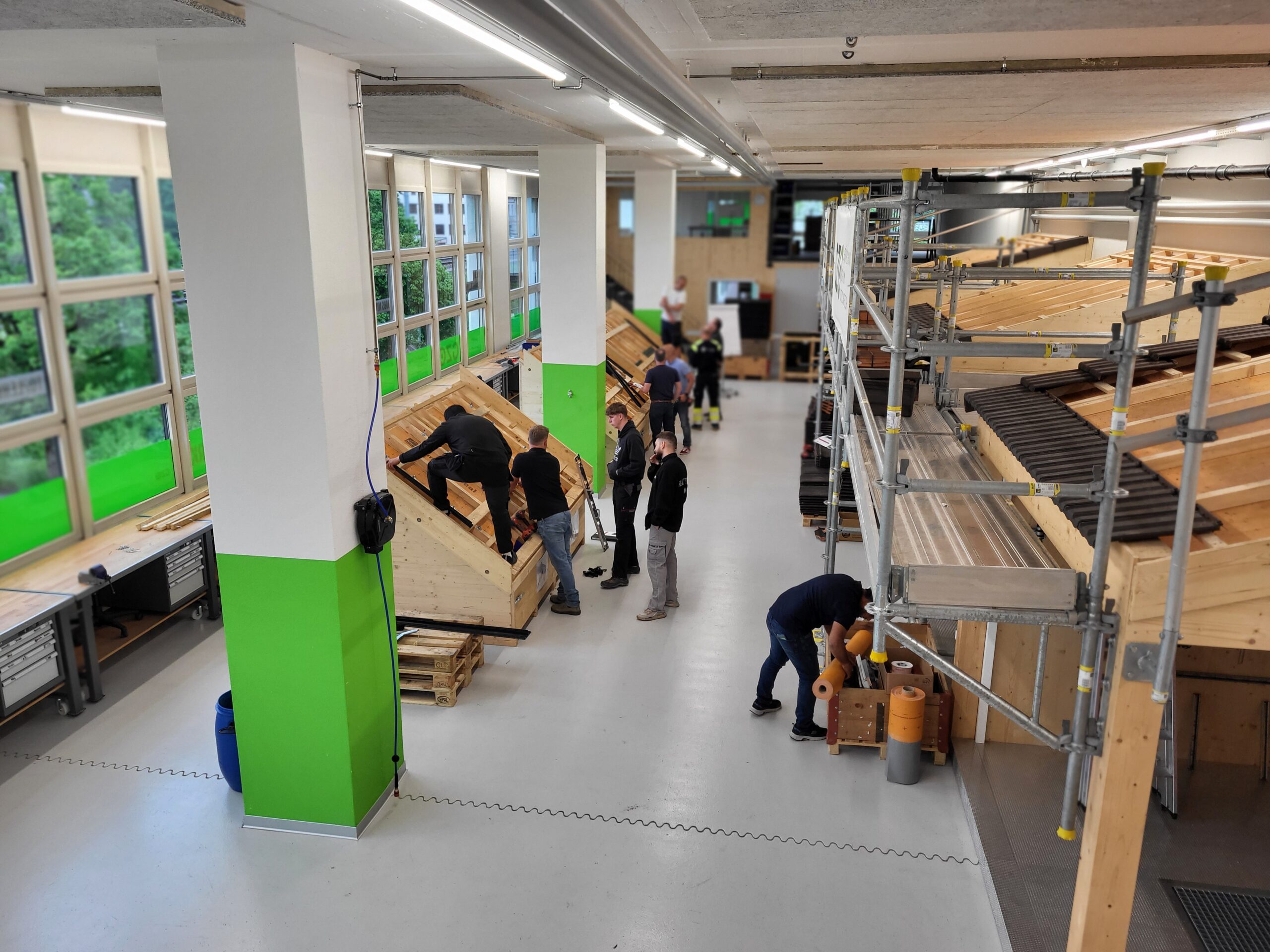 Der Lehrgang umfasst eine breite Palette an Kompetenzen in den Bereichen geneigtes Dach, Flachdach und Fassaden. Dazu gehören unter anderem auch Kenntnisse von Aufbau, Eigenschaften und Funktionen der einzelnen Dachkonstruktionsschichten und Dacheindeckungsmaterialien. Die Teilnehmer lernen zudem sich auf Dachkonstruktionen sicher zu bewegen und dabei die arbeitsschutztechnischen Massnahmen adäquat umzusetzen. An Trainingsmodellen wurden Photovoltaik im Indach- und Aufdach-System ausgebildet. Der Lehrgang umfasst ebenfalls ein Blitzschutz- und Unterdachkurs. Die Teilnehmer erstellten an den Gebäudetechnikmodellen im SkillsPark eine komplette PV-Anlage mit String-Verkabelung inkl. einer vollumfänglichen Elektroinstallation bis hin zu Überspannungsschutz und Wechselrichter. Der Lehrgang wurde mit dem PSAgA Kurstag abgerundet.