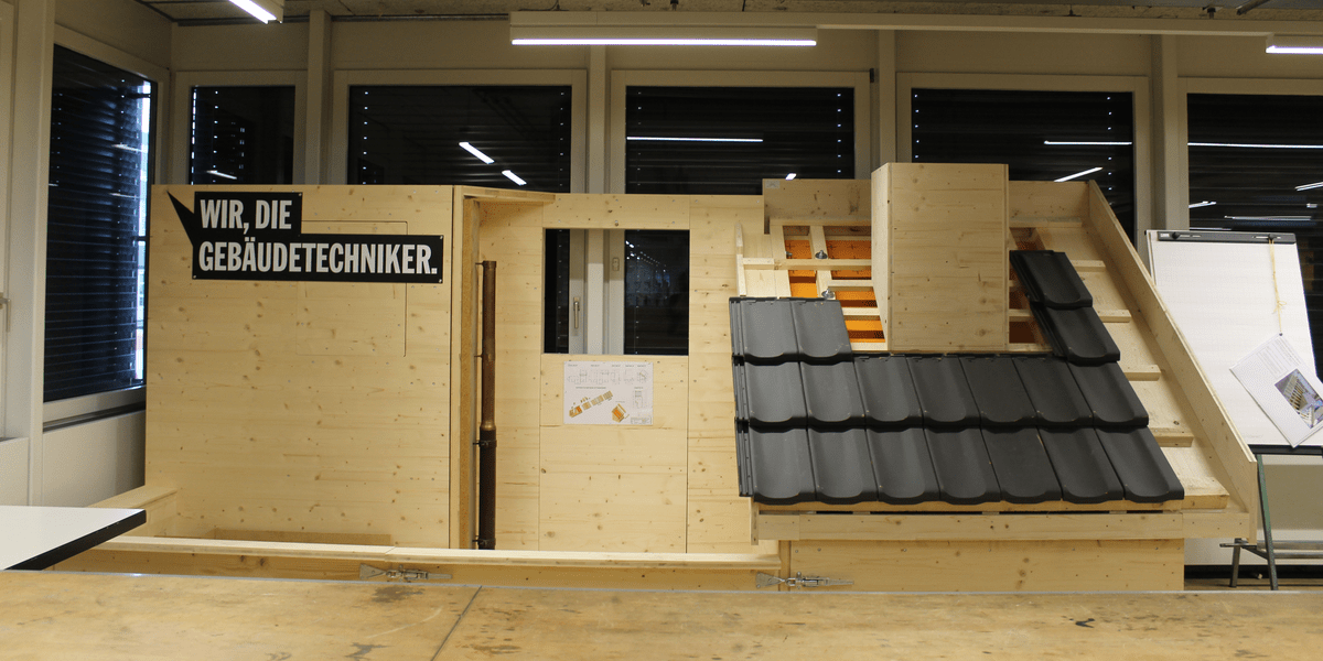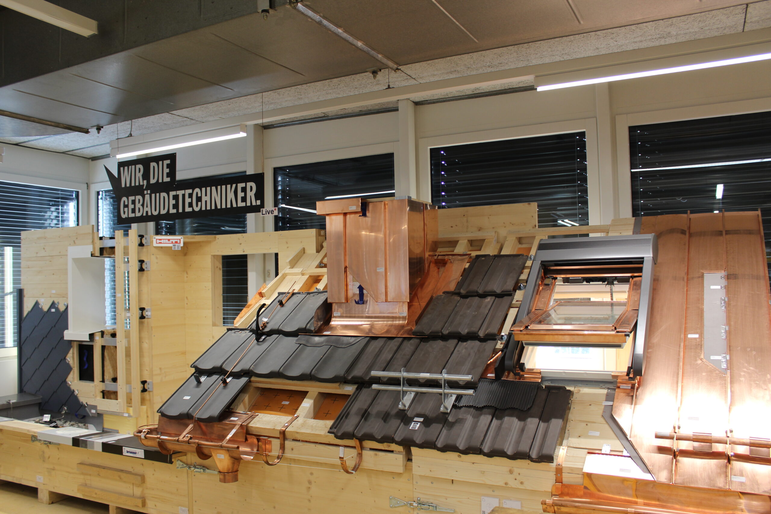 Durch die modulare Bauweise können einzelne Bauteile zusammengesteckt und somit alle praktischen Baudetails simuliert werden – von der Fassade bis zum Flachdach sind alle Dacheindeckungen abgebildet. Jedes in der Lehre geforderte Spengler-Detail kann an diesem Modell ausgeführt und somit auch geübt werden. An einem Grundmodul können zwei Lernende gleichzeitig arbeiten. Die Grösse des Modells lässt dies zu.